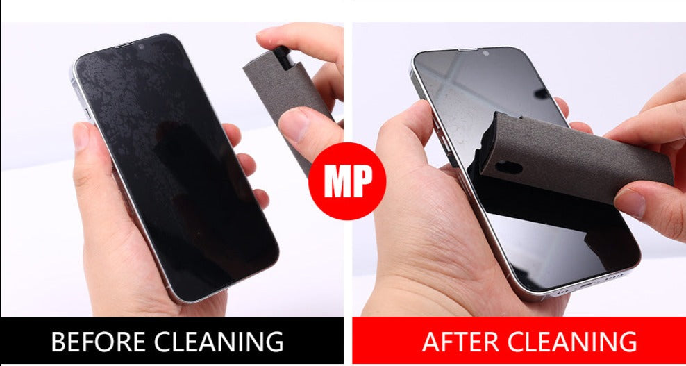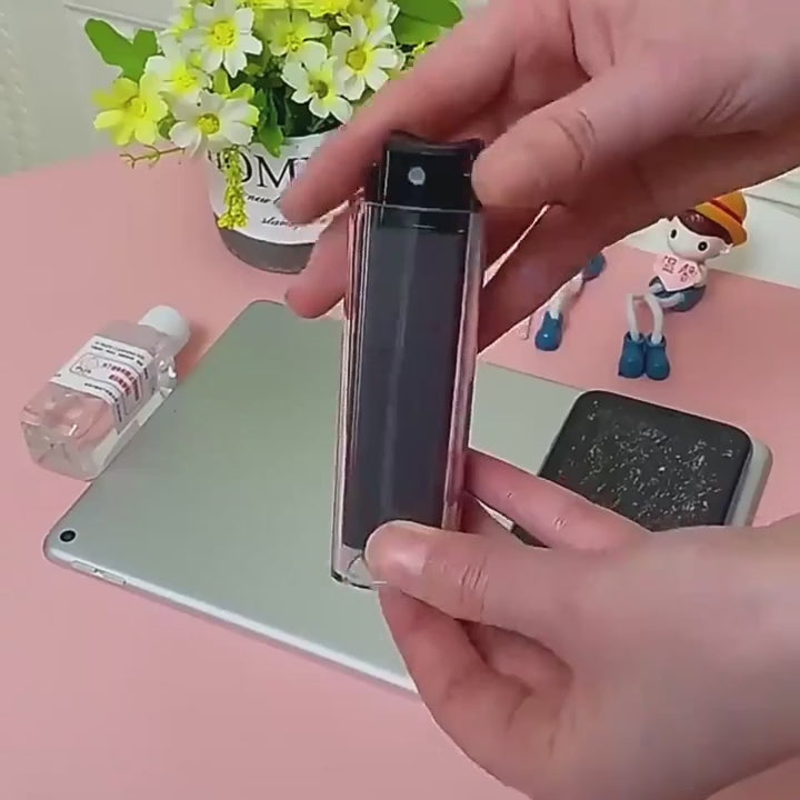 Introducing this handy all-in-one spray bottle of screen cleaner with a built-in microfibre wiping surface on the bottle. Easy to use, just a spray or two cleans your phone screen and leaves it without smudges and fingerprints. The microfiber body is washable and a clear cover for the spray is included to keep it clean. Contains cleaning fluid, enough for more than 200 sprays.